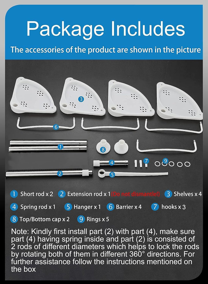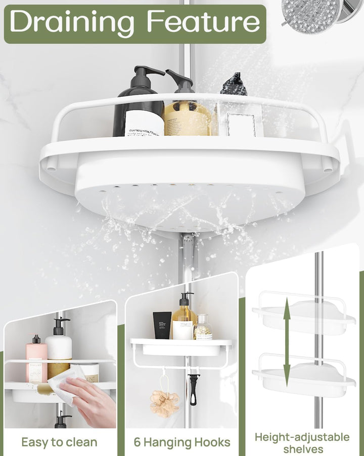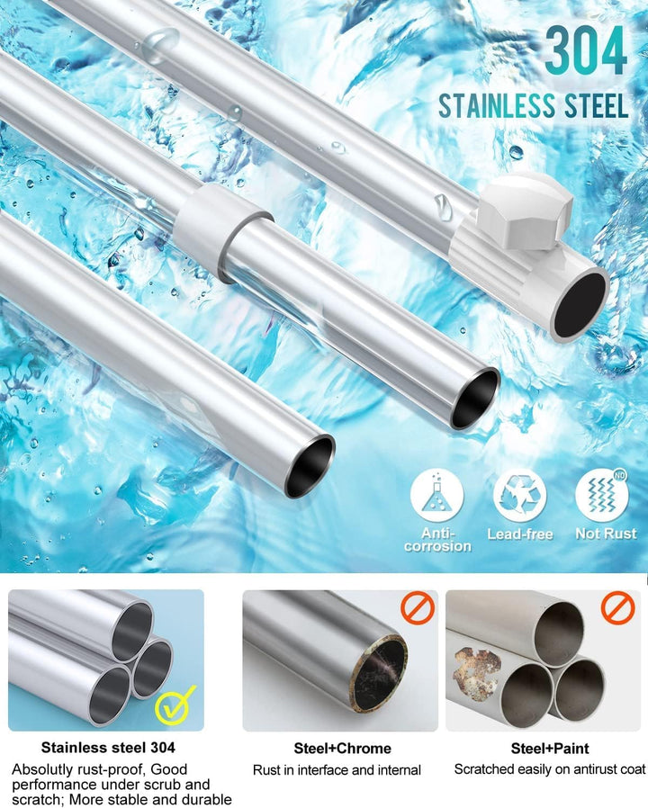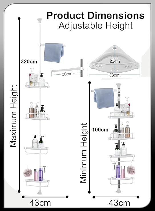 قابل للتعديل: ارتفاع قابل للتعديل من 85 سم إلى 320 سم، مع 4 أعمدة قابلة للتعديل لتناسب معظم الحمامات