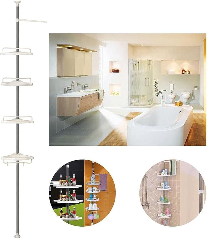 حامل أدوات استحمام الشاور و أدوات المطبخ مقاوم للصدأ, أرفف قابلة للتعديل من 4 طبقات, مع عمود ضغط بين السقف و الأرض (المقاس الكبير ارتفاع 3.20 متر)