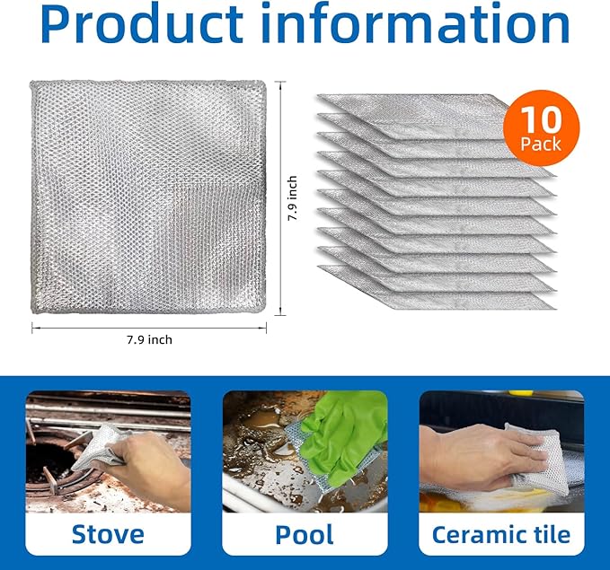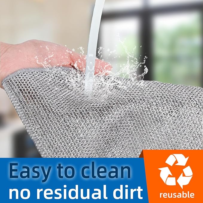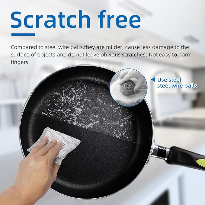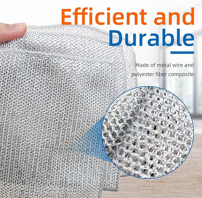 فعالة ولطيفة: تُعالج البقع الصعبة دون خدش أو إتلاف الأسطح. لا تسبب ضررًا ليدك ولا تخدش الأشياء. قماش أطباق سلكي غير قابل للخدش ومنظف من الصلب. بديل لمنظف الصوف الفولاذي أو منظف الفولاذ المقاوم للصدأ، أقمشة غسيل المطبخ للأطباق