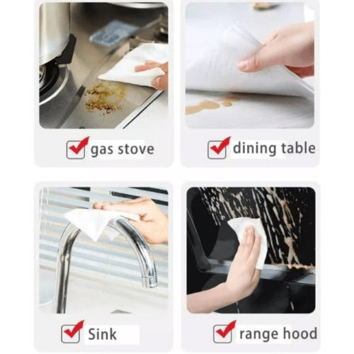 قوة تنظيف الزيت الثقيل: تم تصميم هذه المناديل خصيصًا لمعالجة الزيوت الثقيلة والشحوم، مما يجعلها مثالية لأغطية المطبخ والمواقد وأسطح المطبخ الأخرى.